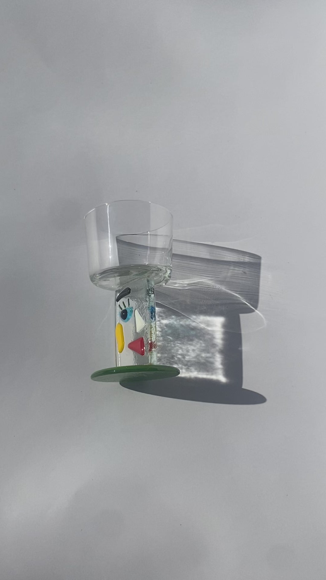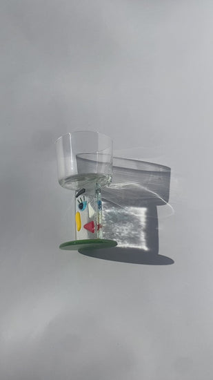 Bring luxury to your home bar and elevate your favorite drink with this unique, sculptural Abstract Face Glass piece—handmade using the technique of glass fusion from our small art glass studio, Dot.